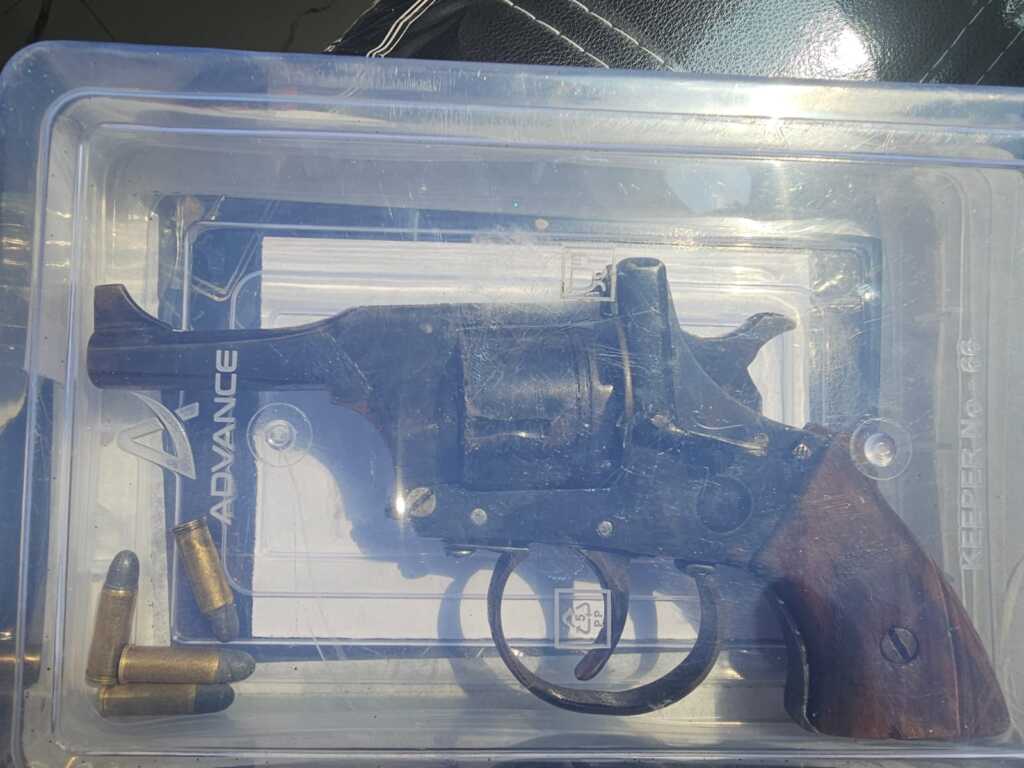 पुलिस ने उसके तीन दोस्तों को गिरफ्तार कर रिवाल्वर, चार जिंदा कारतूस और बिना नंबर की मोटरसाइकिल बरामद की है।